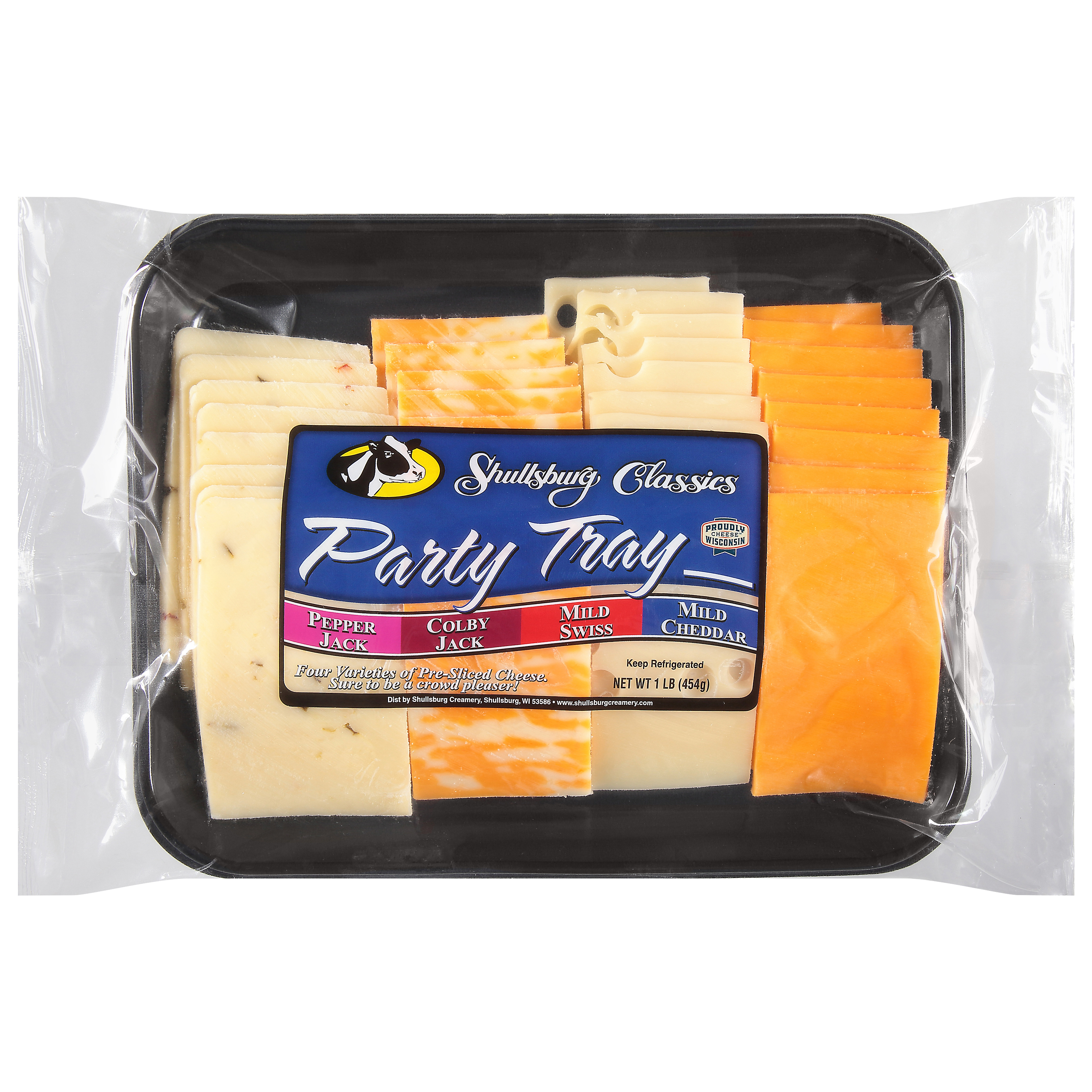 Includes Colby Jack, Pepper Jack, Mild Swiss and Mild Cheddar.