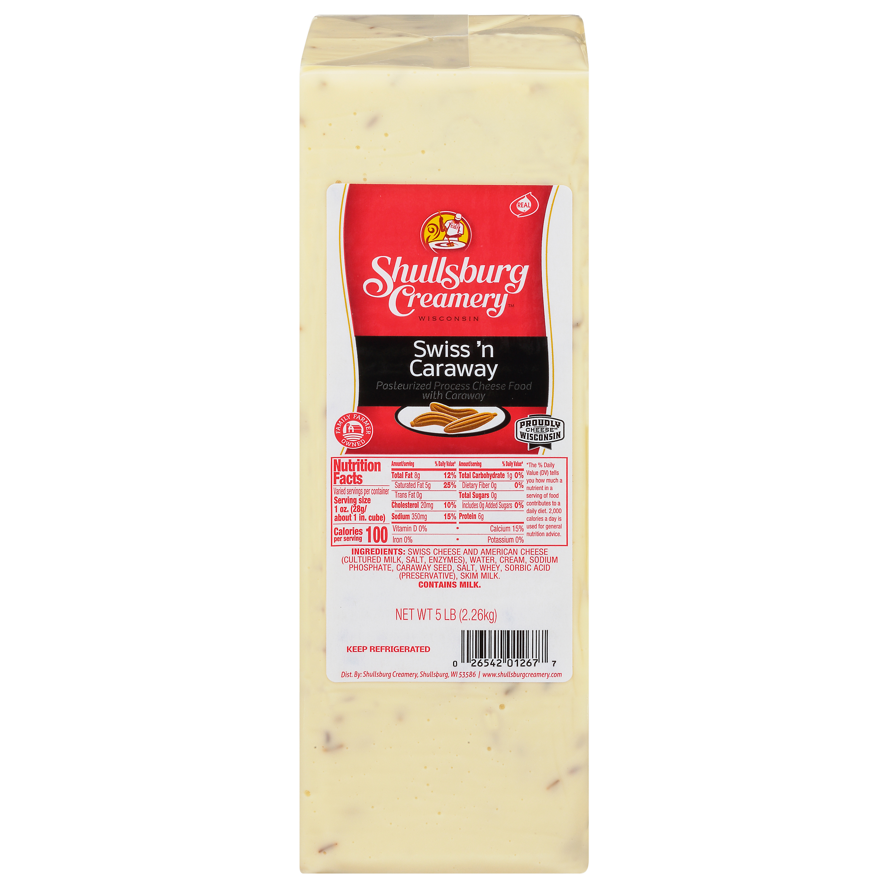 Pasteurized Processed Swiss Cheese blended with caraway seeds.